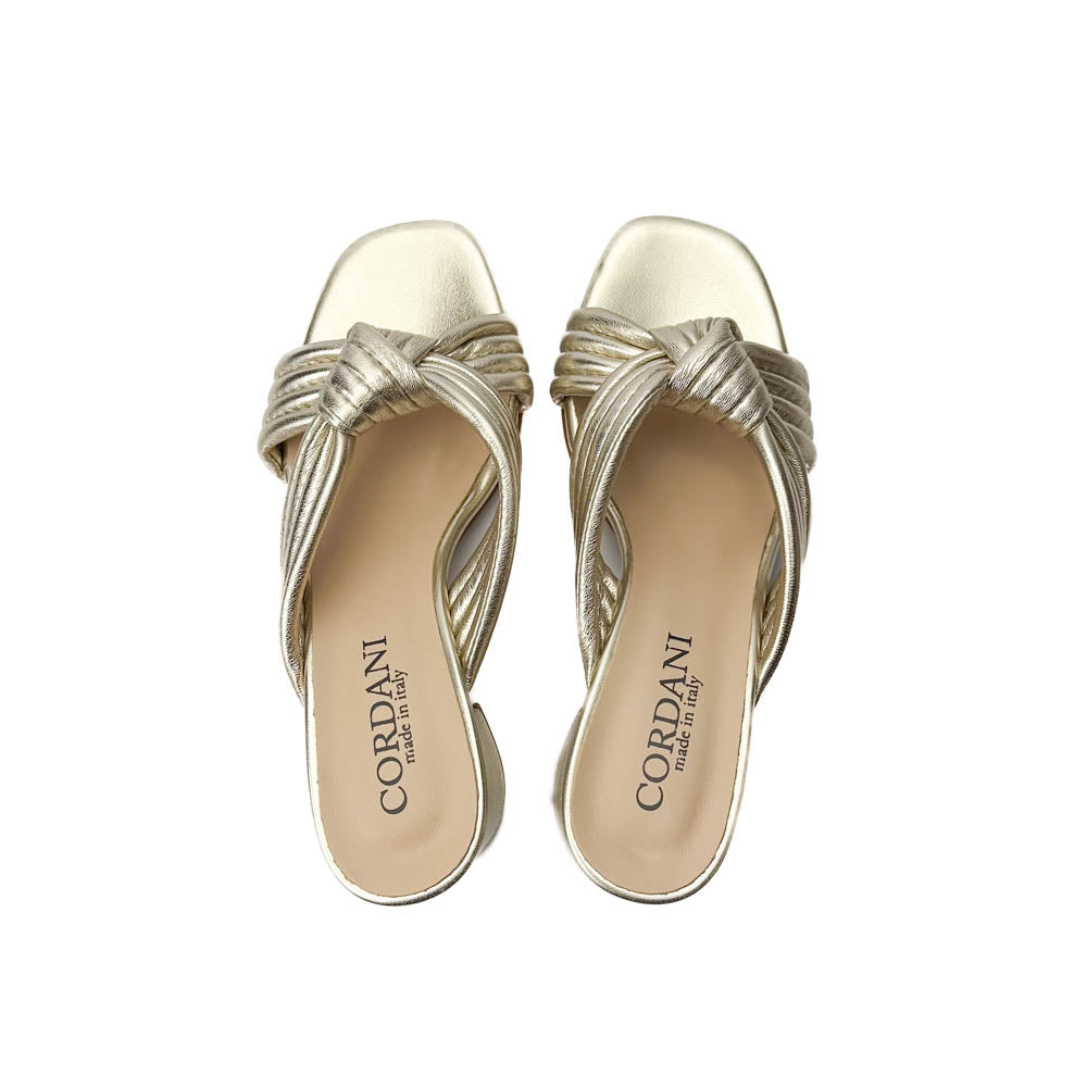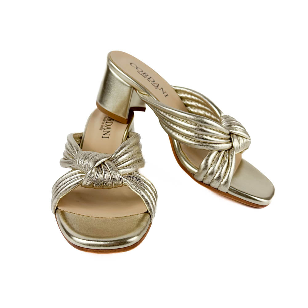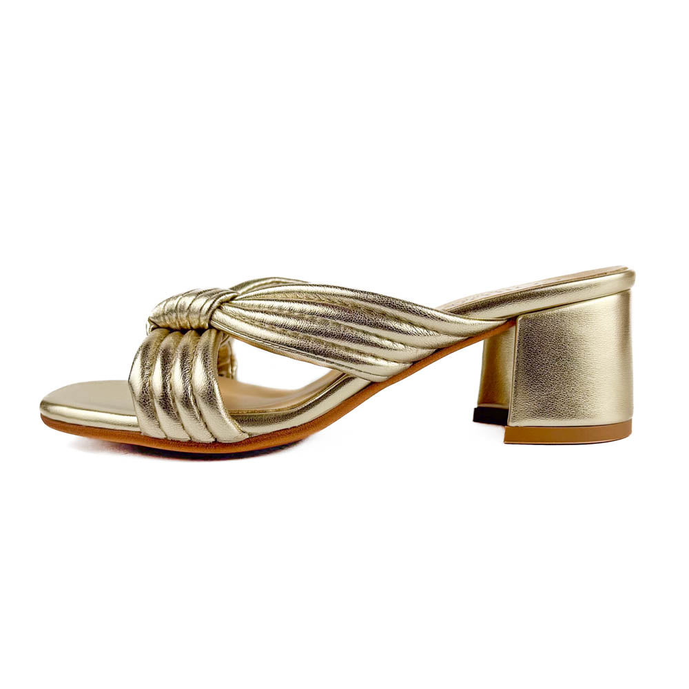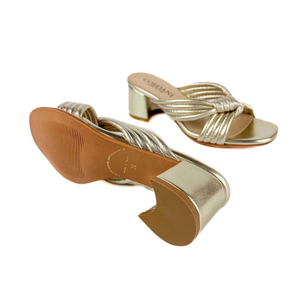 Knotted soft leather upper on wrapped block heel. The pretty platinum sandal with just the perfect amount of height that you'll keep in your collection forever.