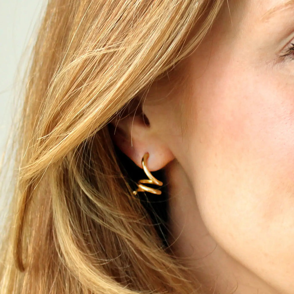 Cast statement earrings with posts. These dainty swirls add a fun touch of gold to your look!