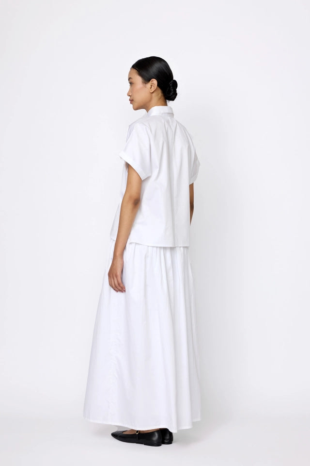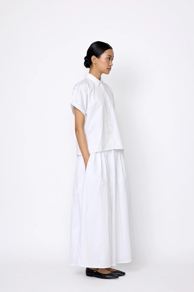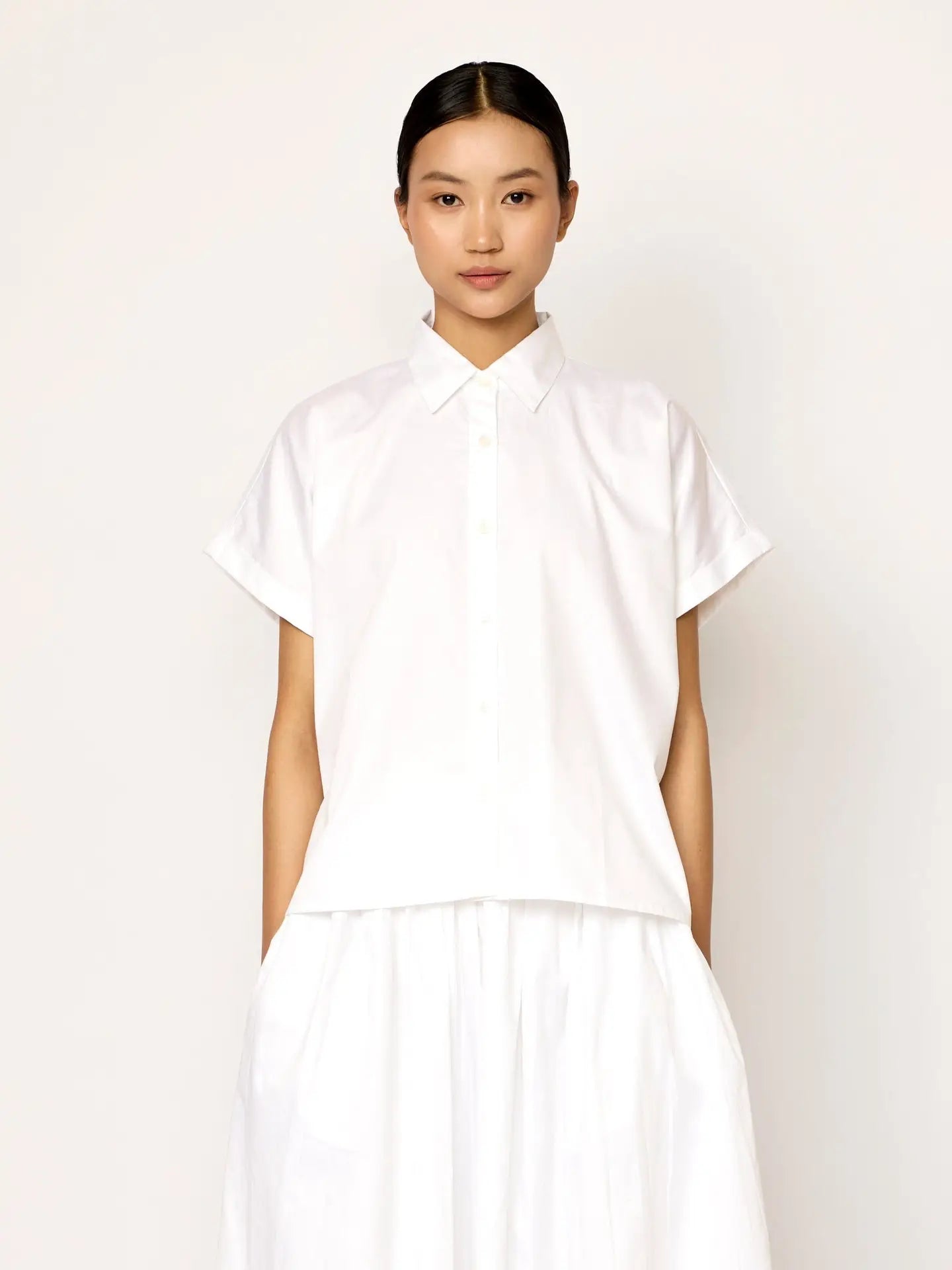 Introducing the Relaxed Short Sleeve Shirt, a sophisticated staple for sun-soaked days. Crafted from a dreamy organic cotton poplin with a luxurious finish, this shirt exudes effortless style. Pair it elegantly tucked into the Relaxed Skirt for a modern and coordinated look.