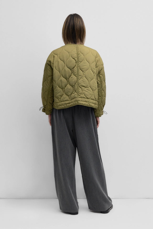 The Kara Jacket is a great everyday quilted zip-up, reimagined in a modern, boxy, cropped silhouette. It features front patch pockets, adjustable cords at the wrist and hem for a custom fit, and a hidden button placket for a clean, polished finish.