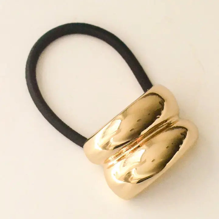 This hair tie features a sleek and minimal double cuff design that fits effortlessly around your pony tail. This eye-catching metal cuff adds a cute and lovely yet sophisticated touch to any hairstyle.