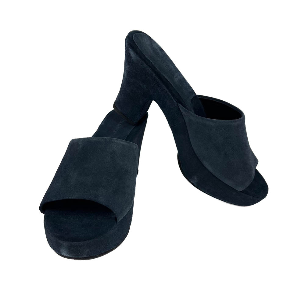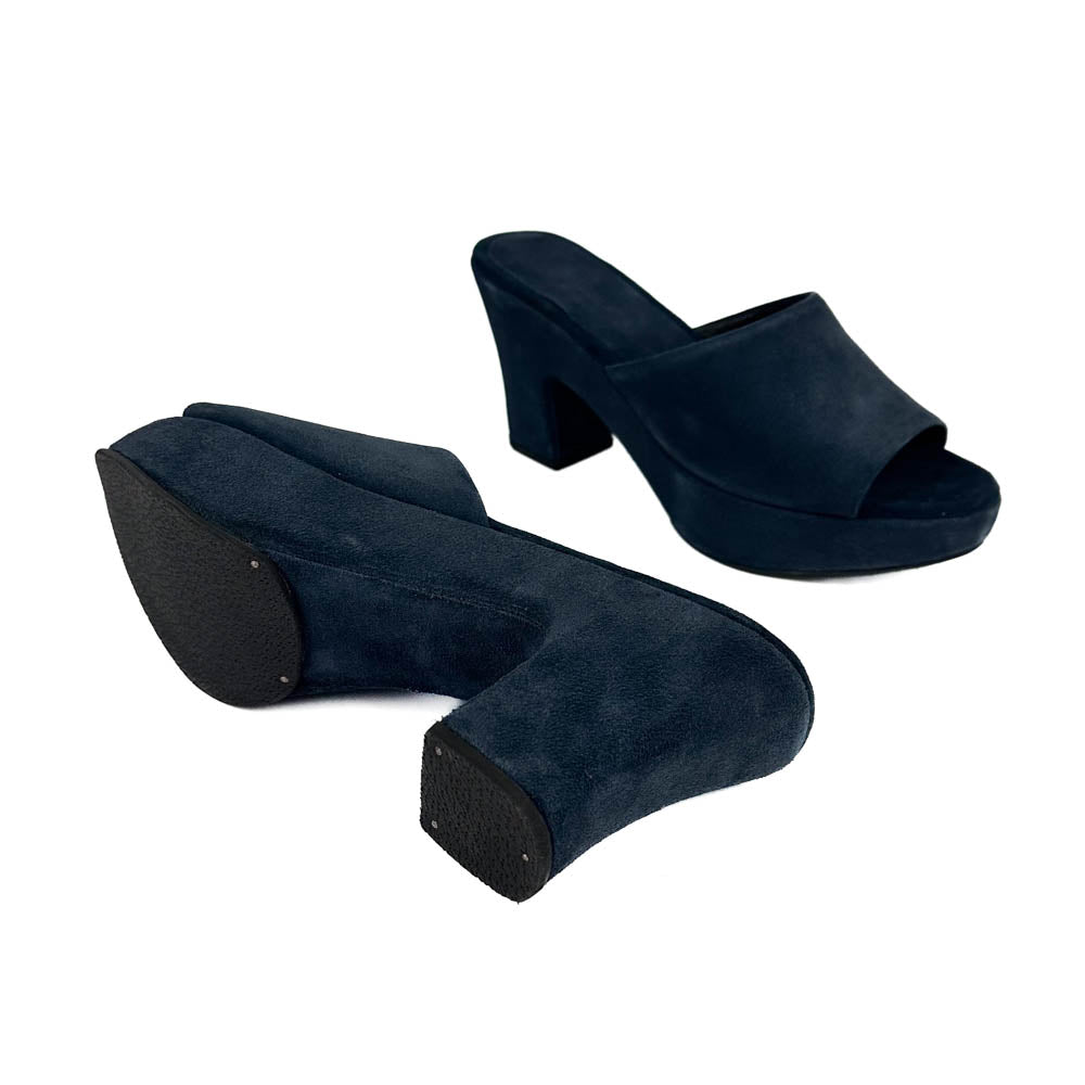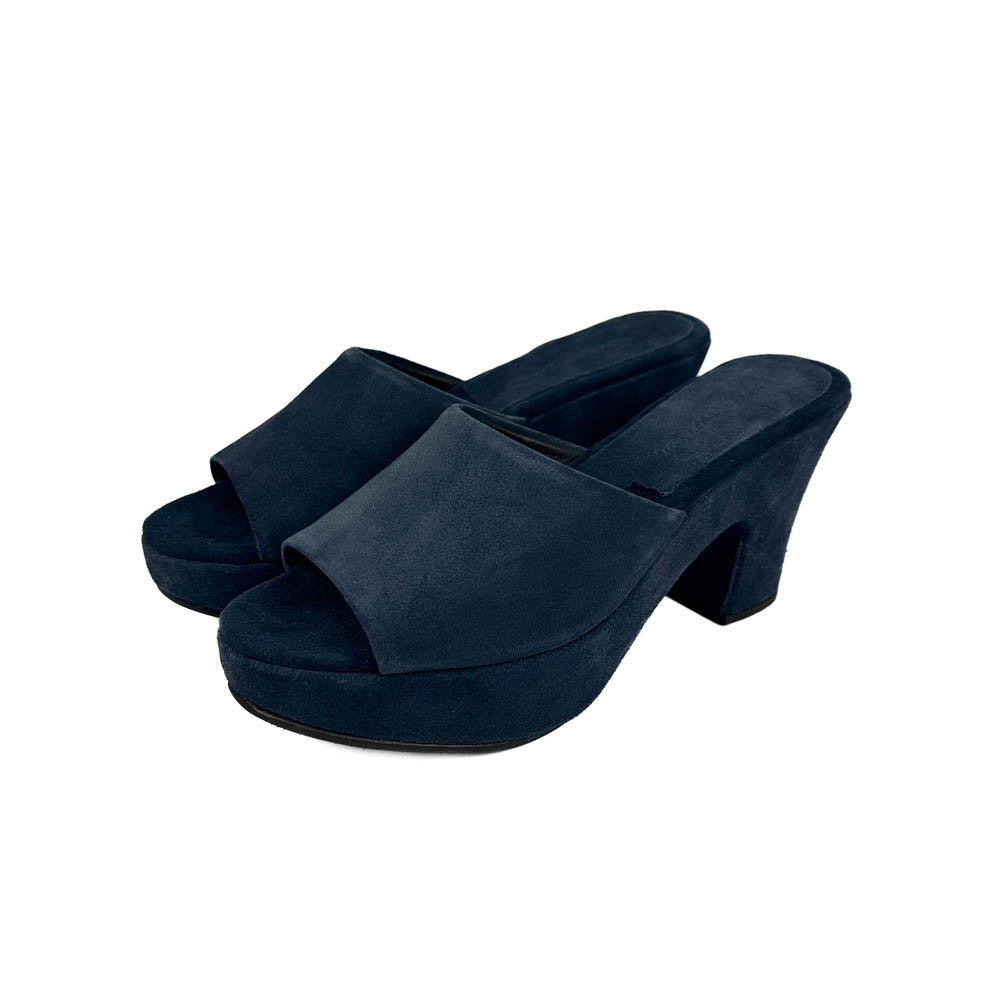 Not your average clog, Pryce is an elevated heeled clog sandal in a striking shape and refined dark indigo hue.