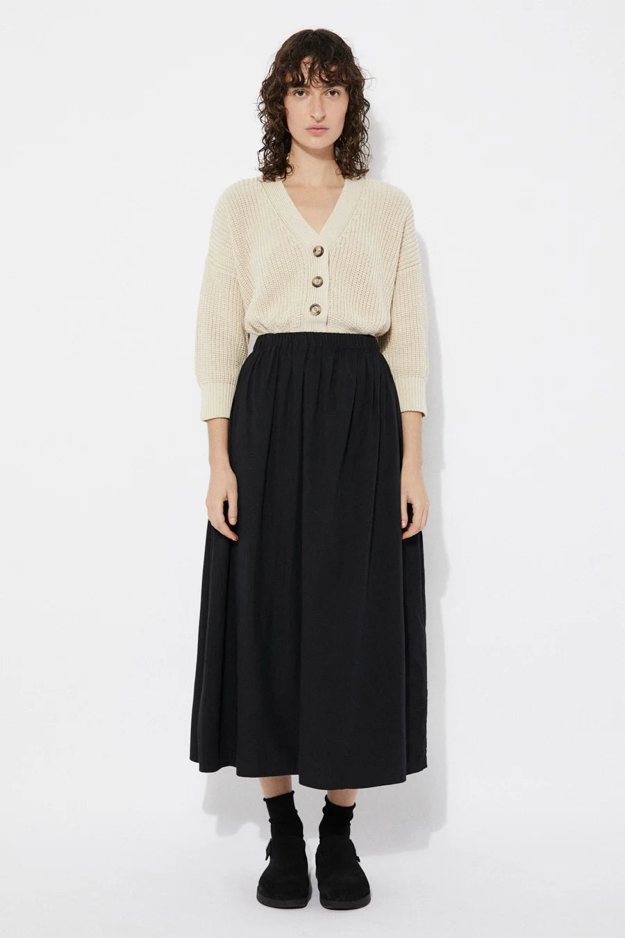 Cardigan in soft organic cotton rib knit. Relaxed fit with dropped shoulders, V-neckline and buttons at the front. Features ribbed trim on collar, cuffs and hem. It's the perfect everyday cardi.