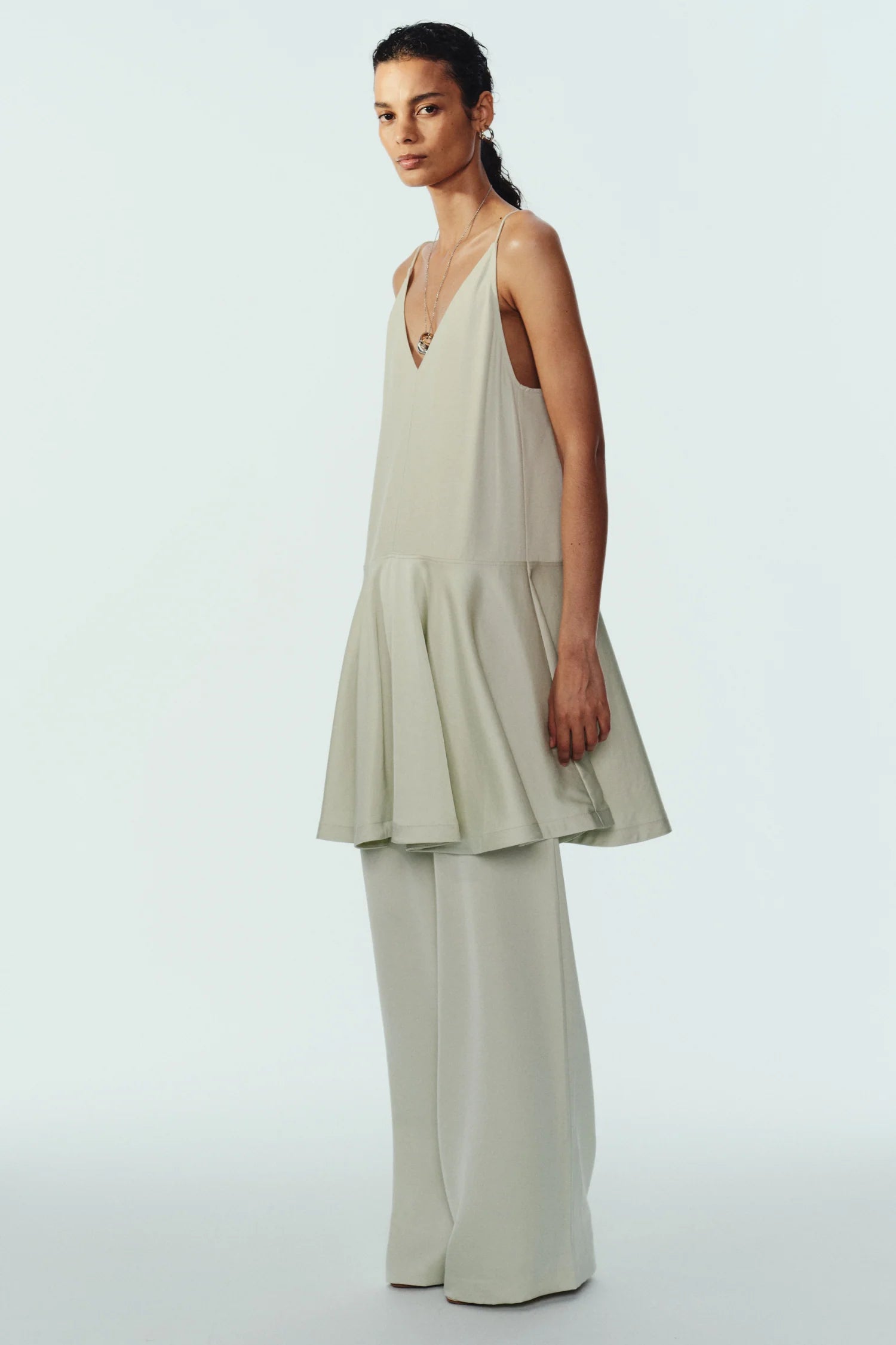 The Devon Dress combines refined elegance with modern sophistication. This v-neck silhouette features delicate spaghetti straps that frame the shoulders with understated grace. Crafted from a luxurious blend of matte and shine charmeuse, the fabric interplay creates visual depth and movement—the matte sections provide structure while luminous accents catch light for a polished, dimensional finish. Perfect for elevated occasions or refined everyday wear, this dress transitions seamlessly from day to evening.