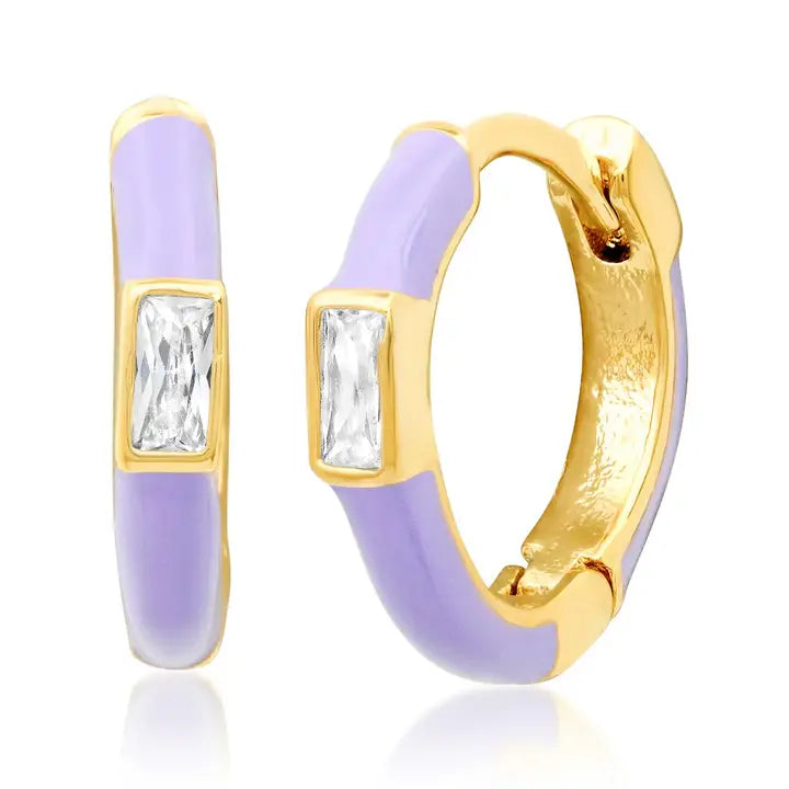 Tai - Enamel Huggies with Baguette Cz Accents (Lavender)